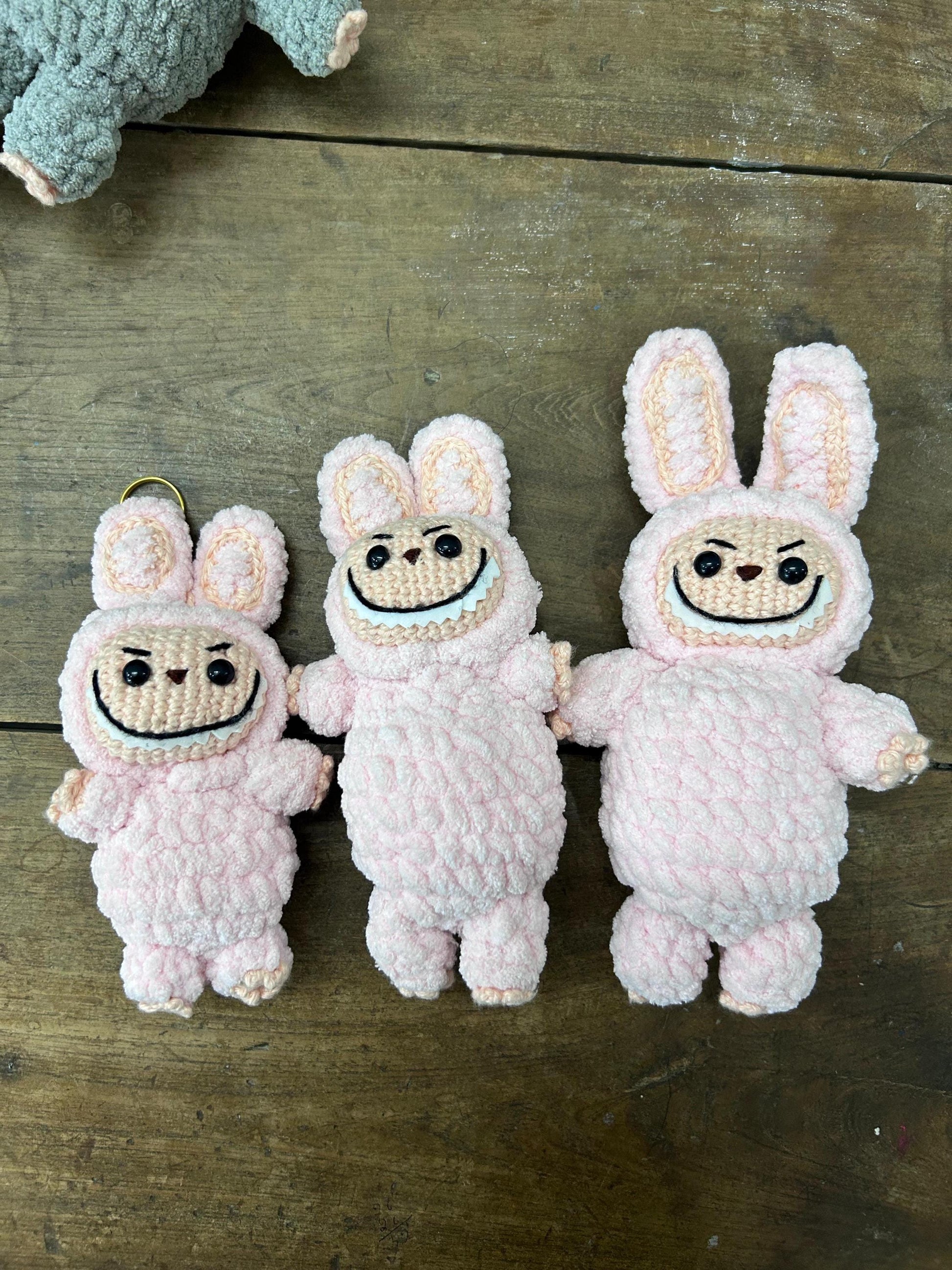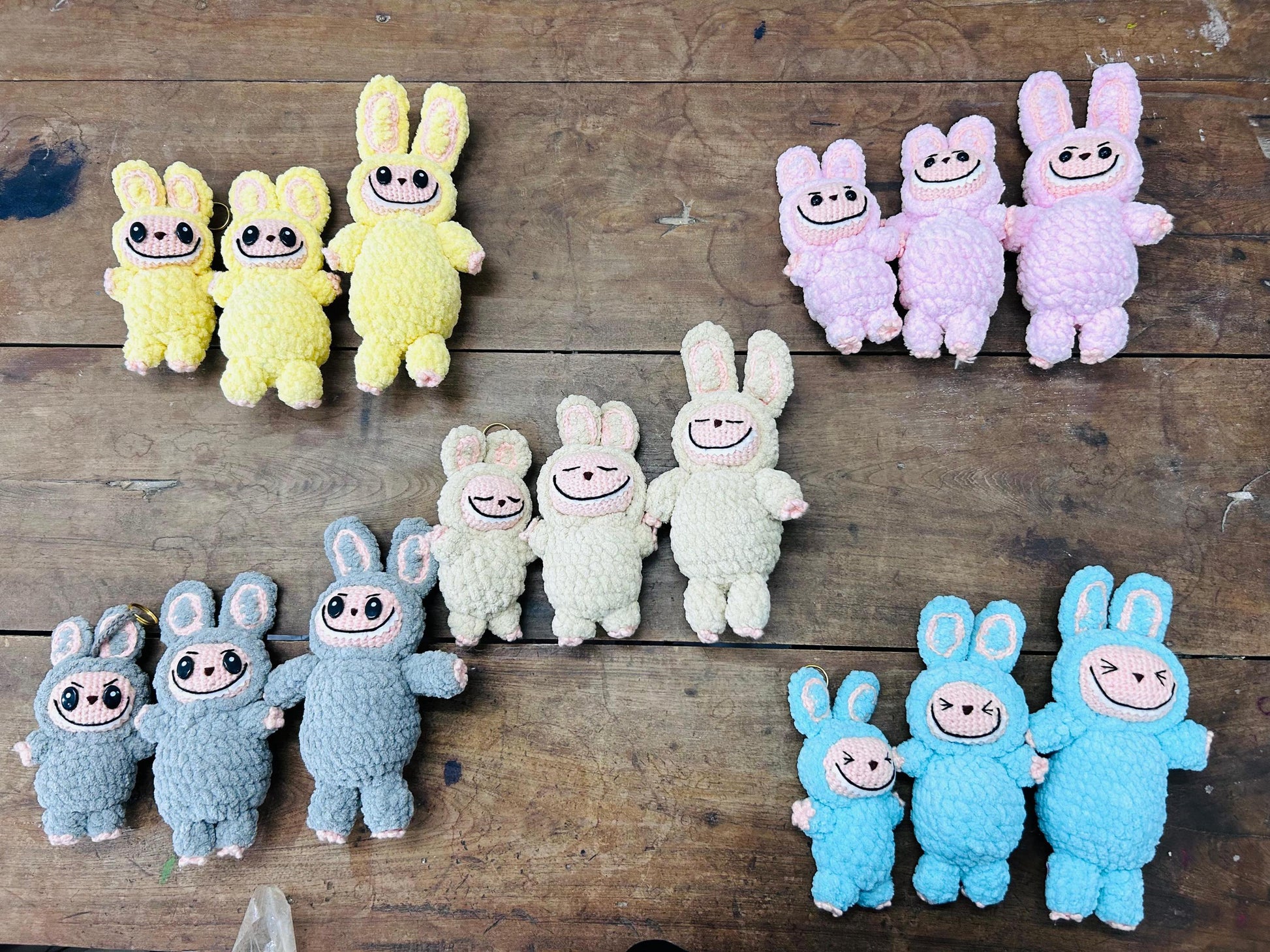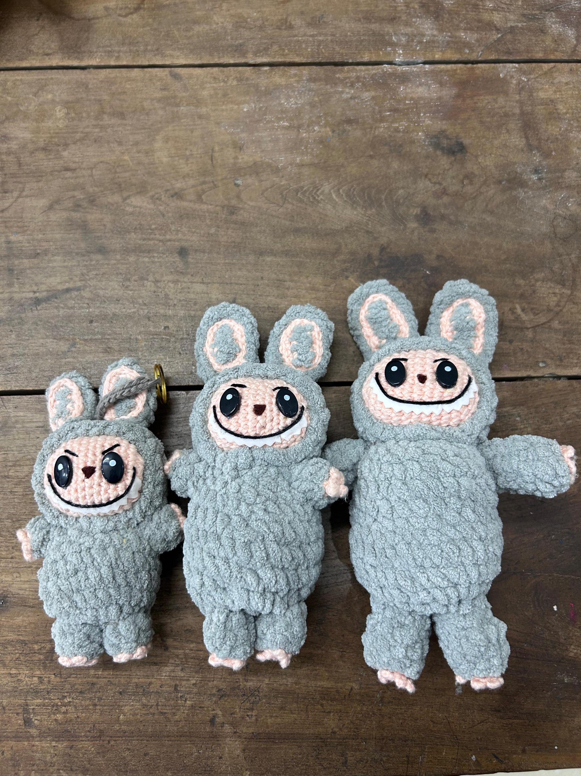 Crochet Labubu Doll – 5", 8" & 12" Plush Sizes | Handmade Kawaii Amigurumi | Multiple Colors and Expressions Cute Gift Toy Monster Bag Charm