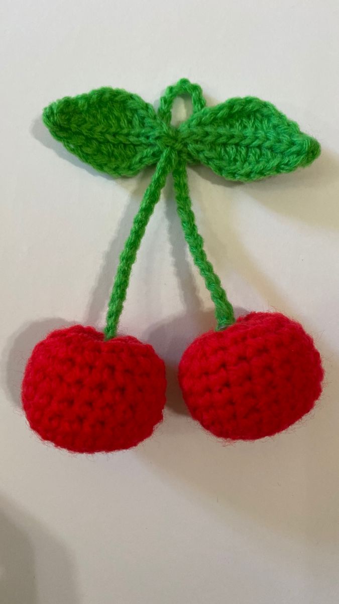 Handmade Crochet Cherry Fruit Toys – Set of Soft Amigurumi Fruits for Kids, Décor & Gifting
