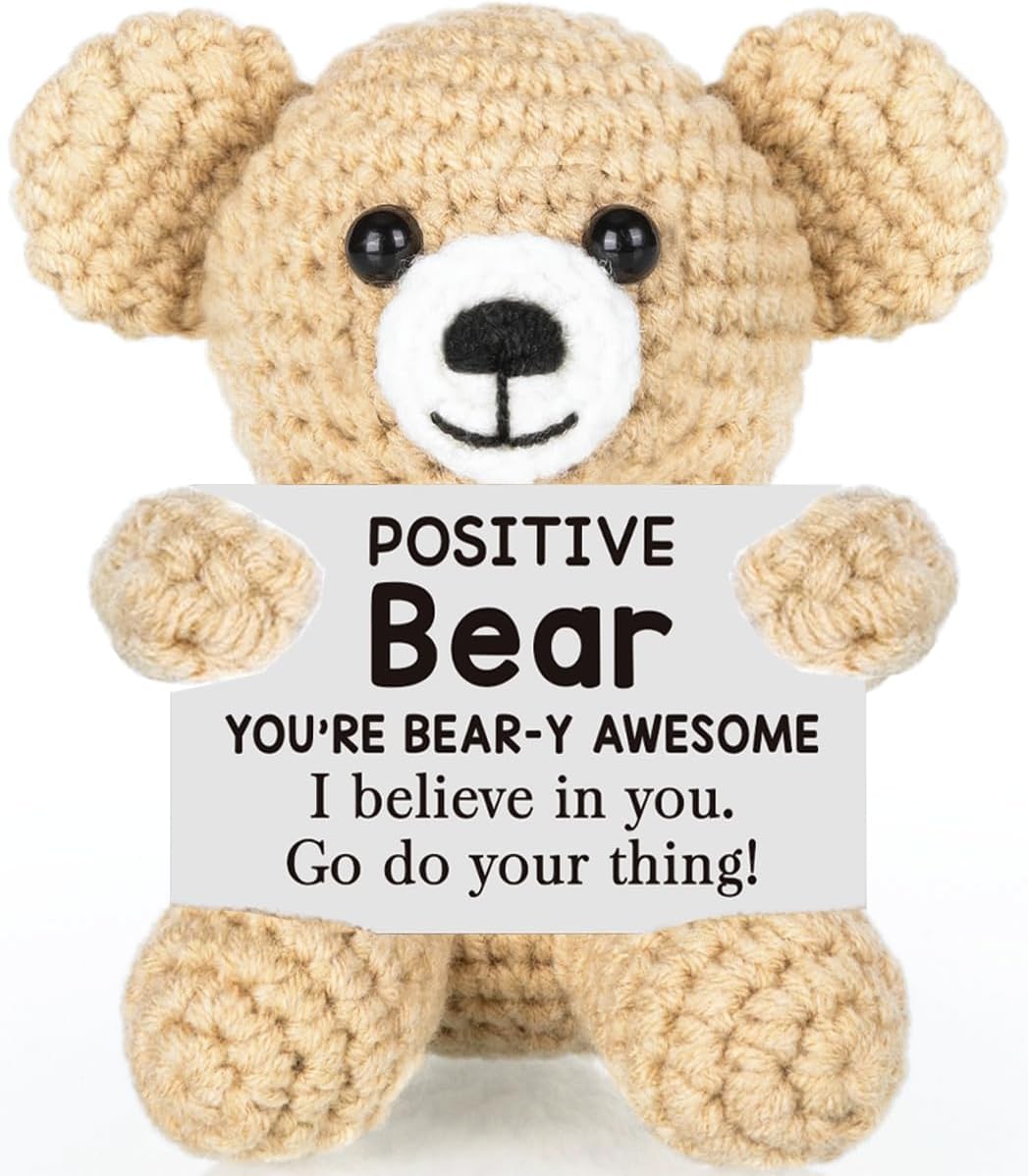 Handmade Crochet Doll with Positive Quote, Cute Plush Toy Gift | Uplifting Gifts for All Ages