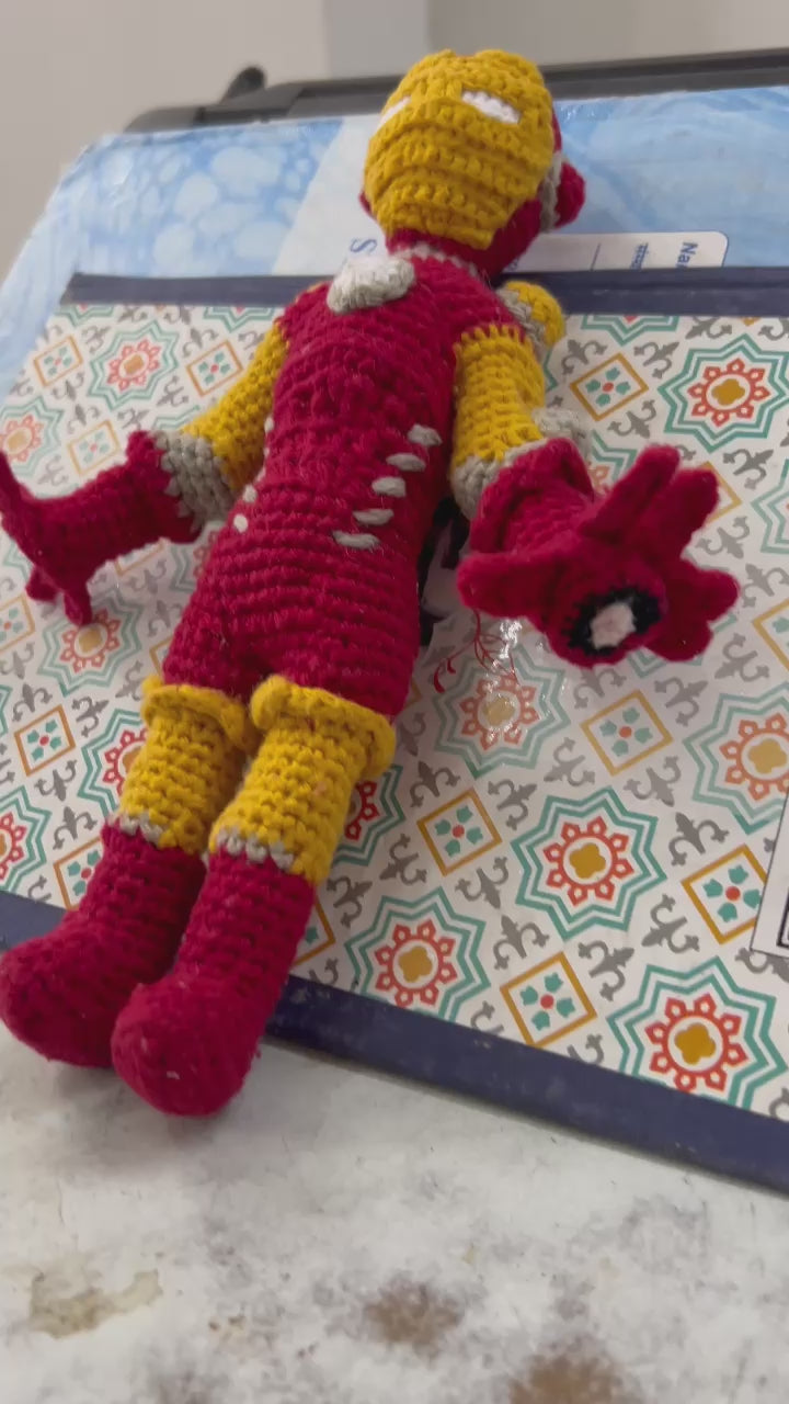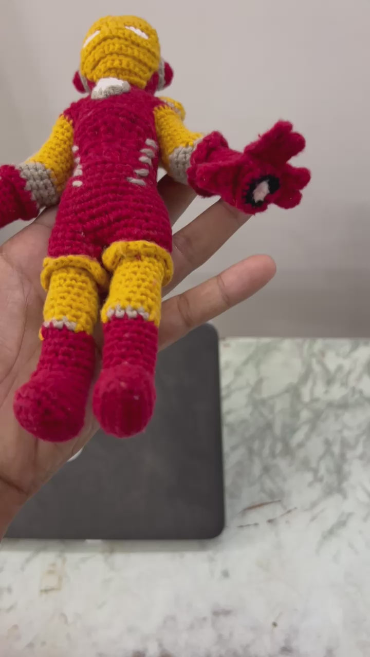 Handmade Crochet Iron Man Plush Toy – Superhero Soft Doll | Marvel-Inspired Gift for Kids & Collectors