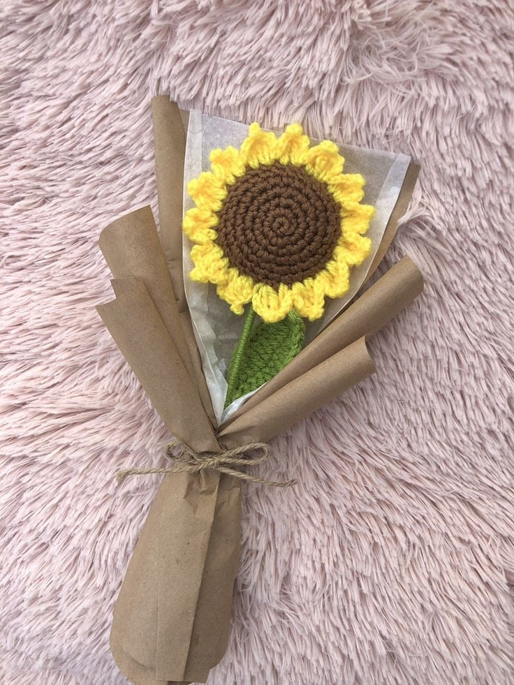 Handmade Crochet Sunflower – Single Stem Bouquet | Forever Flower Gift | Eco-Friendly Home Decor