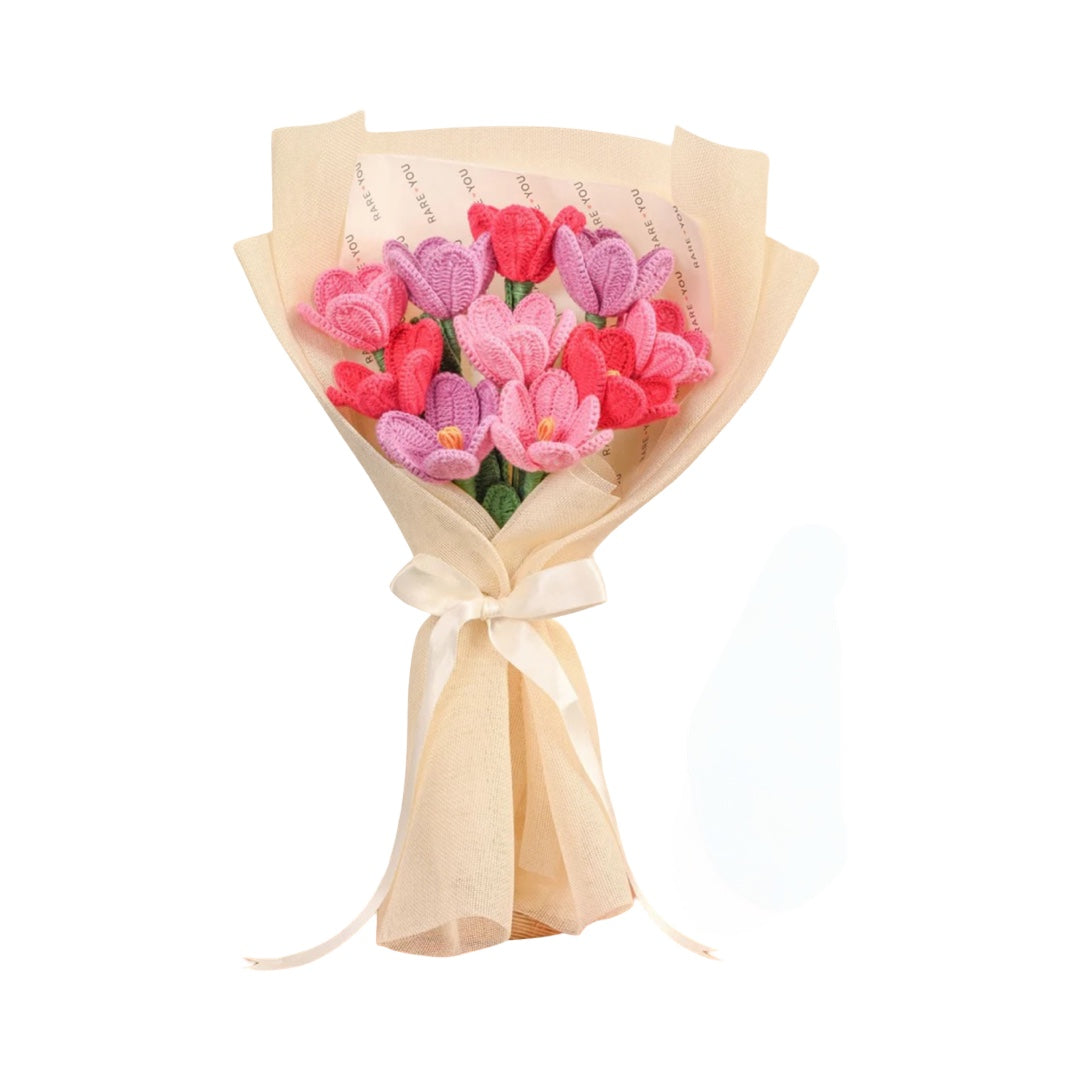 Each tulip in this elegant bouquet is made with love by skilled women artisans, representing beauty, care, and timeless affection. Wrapped in soft ivory paper with a satin bow, this bouquet is perfect for celebrating someone special — or even yourself.