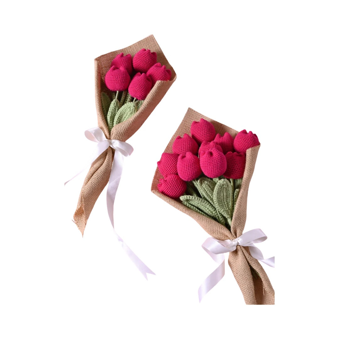 1 Crochet Bouquet with 5 Pink Tulips and 1 Crochet Bouquet with 10 Pink Tulips