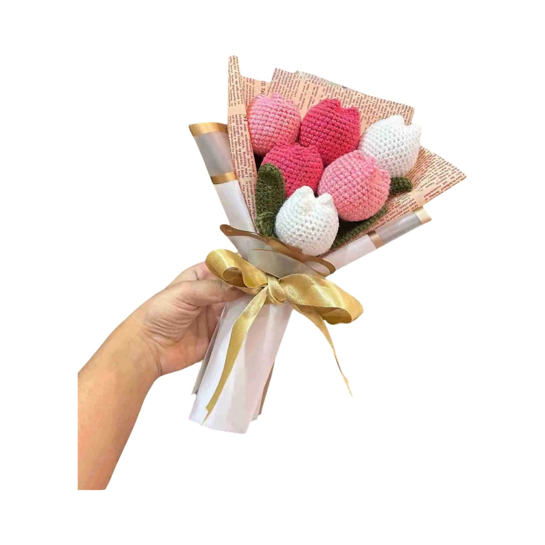 Handmade Crochet Tulip Bouquet – Pink & White Flowers | Custom Gifting & Home Decor | Long-Lasting Floral Gift
